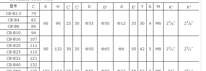 CB-B20/25/32/40齒輪泵/液壓油泵安裝技術(shù)參數及技術(shù)規格