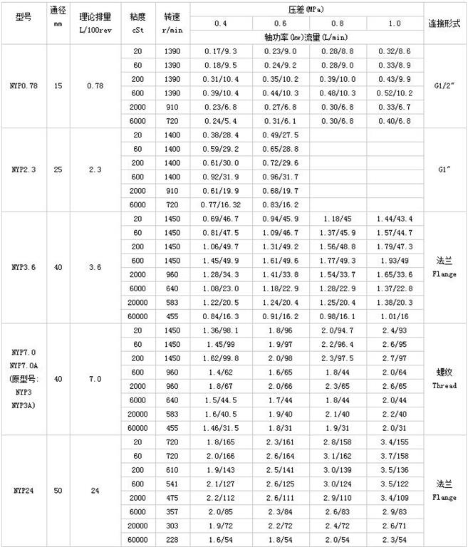 1)鑄鐵材質(zhì):適用于不含金屬顆粒物的高粘度流體介質(zhì),適用工況為石油輸送工況,涂料輸送工況,適用輸送溫度為:-10℃—200℃,適用介質(zhì)粘度為:1.0cSt—300,000cSt。